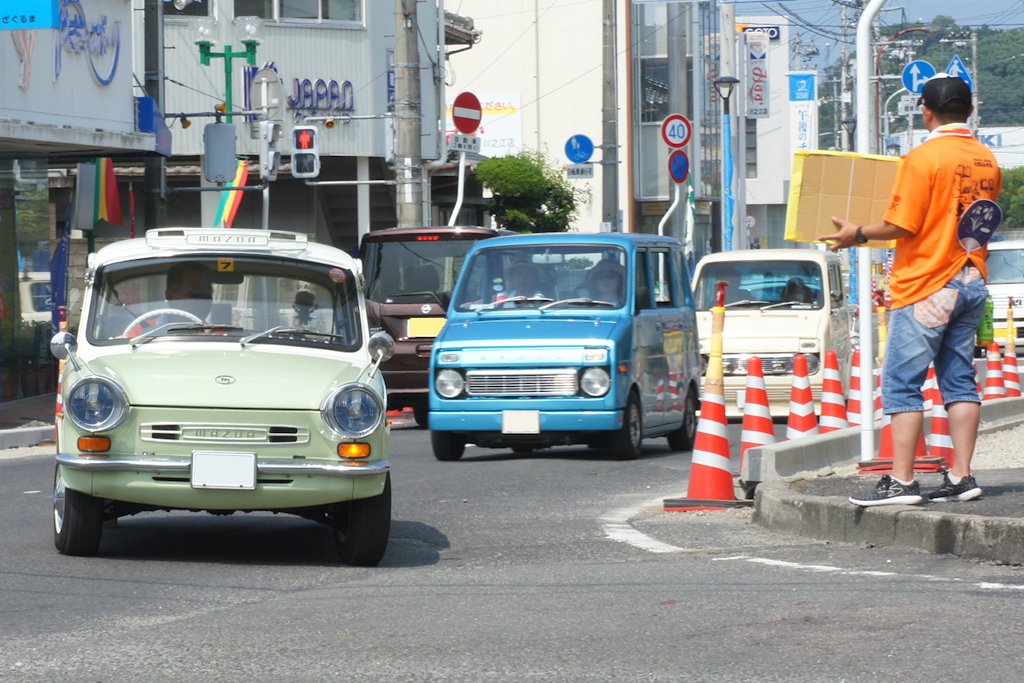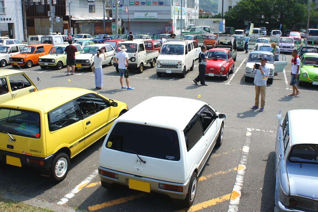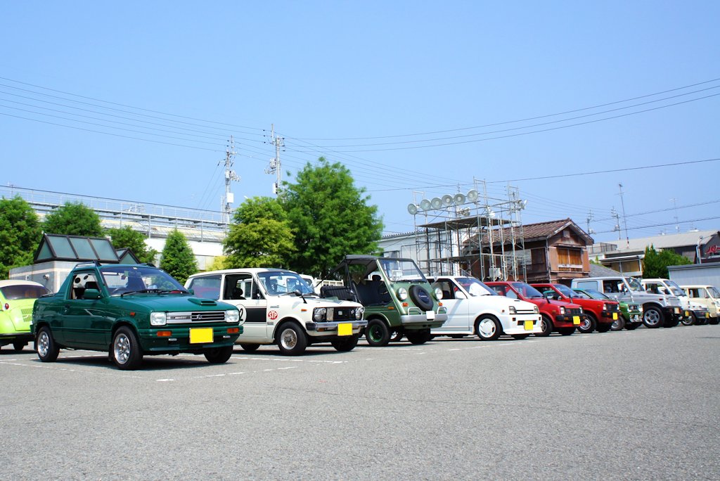 第8回U-550旧軽自動車ミーティング イベントレポート 2017年08月02日 0 紙の生産・出荷量が日本一の愛媛県四国中央市にて「第40回 四国中央紙まつり」が開催されました。イベントに合わせて第8回U-550旧軽自動車ミーティングが行われました。U-550旧軽自動車ミーティングとは、排気量550ccまでの懐かしく小さく愛らしい姿の個性あふれる旧軽自動車が集まるイベントです。U-550旧軽自動車ミーティングinラスタ栄町モノを大事に長く使うことそれもエコです。 日時:2017年7月31日(日)10:00~15:00場所:JR川之江駅前栄町駐車場・ラスタ栄町(愛媛県四国中央市川之江町)主催:U-550旧軽自動車ミーティング 事務局問い合わせ先:U-550旧軽自動車ミーティング 事務局 村上慎也(u550qk@yahoo.co.jp)イオン川之江店から四国中央市川之江栄町駐車場までパレードランが行われました。 懐かしい車から珍しい車まで69台もの旧規格軽自動車が集合しました。イベント開始の10時ごろには、焼けつくような真夏の陽射しが照り付け大変暑い中でのイベントとなりました。お昼頃には車の外気温計が37℃を超え、会場は地面からの照り返しもあり更に暑さが厳しく感じるイベントでしたが、多くの見学者で賑わいました。