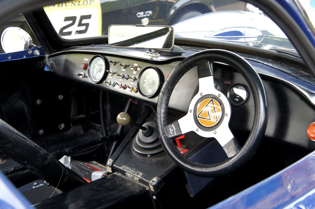 ジネッタ・G4(1964年式)愛車紹介18台目 ジネッタ 2017年07月10日 0 今回紹介する車両は「ドンキホーテジムカーナ2017」にエントリーされていたジネッタ・G4です。 年式:1964年式 G4はジネッタカーズから販売された車です。ジネッタカーズとは、1957年にイギリスでレース好きの4人兄弟の手によって発祥した少量生産のスポーツカーメーカーです。G4は1961年から1969年にコンプリート・カーだけではなく、一部はキット・カーとして販売されました。生産を終了していたG4ですが、日本の愛好家の熱望により1990年代に再生産されることになりました。主に日本向けに販売されることとなり、オリジナルの外観を保ちながらも、品質が当時に比べ格段に向上したため、日本での使用にも耐えうる仕上げがなされています。エンジンは1000ccフォード製のOHVをフロントミッドシップに搭載しています。オプションとして1300ccエンジンも用意されていました。その後、1600ccや1800ccが追加されエンジンバリエーションが豊富な車です。ボディはFRP製のため、とても軽量です。シャーシは25mm鋼管から構成され、軽量・強固なチューブラー・スペース・フレームを採用しています。車体重量はわずか400kg程の超軽量ボディだったため、非力なエンジンでも高いパフォーマンスを発揮したライトウェイトスポーツです。G4はアマチュアレーサーに大ヒットし、少量生産のスポーツカーとしては異例の500台以上を生産しました。 愛知県東海市よりエントリーされていました。1500ccのエンジンを搭載しています。もともとはオープン仕様のため、サイドガラスがありません。 レースカーの雰囲気があるインテリアです。シフト横にはレースカーらしく、バッテリー回路をオン・オフするキル・スイッチがあります。