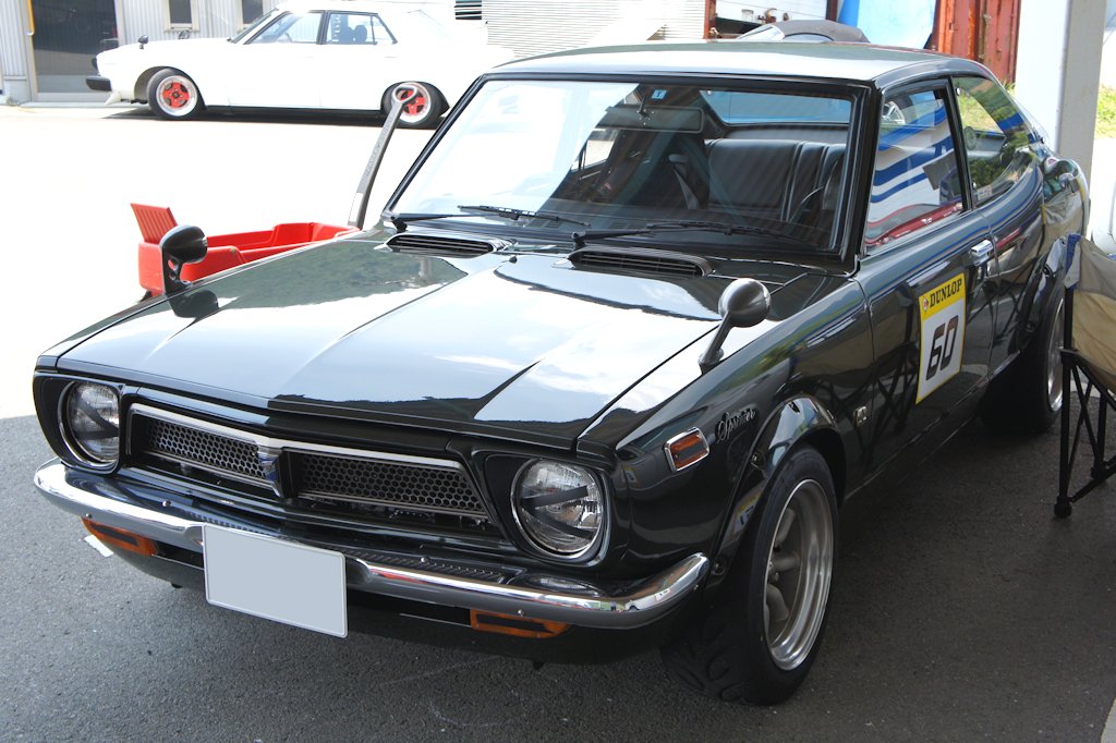 トヨタ・スプリンタートレノ(1973年式・TE27)愛車紹介47台目 トヨタ 2017年08月08日 0 今回紹介する車両は「ドンキホーテジムカーナ2017」にエントリーされていたトヨタ・スプリンタートレノです。 年式:1973年式型式:TE27 スプリンタートレノは1972年3月に、それまでのトヨタ車の殻を打ち破り走りに徹したホットモデルとして登場しました。トヨタ・スプリンタークーペの高性能バージョンとしてサブネームとして「トレノ」と名付けられました。搭載エンジンは、上位車種であるセリカ1600GTから移植されたハイオクガソリン仕様の2T-G型1.6L DOHCエンジンが搭載されました。わずかながら出力馬力は低下するが、レギュラーガソリン仕様の2T-GR型も設定されました。1973年4月のマイナーチェンジの際に追加されたトレノJ(ジュニア)には、2T-B型1.6L OHVエンジンが搭載されました。廉価モデルでしたが、DOHC仕様に対し低速域から中速域までのトルク特性やレスポンスを優先させています。愛好家の間ではTE27、や型式の略として「ニイナナ」と呼ばれています。ボディカラーはオレンジ色の「モンテローザオレンジ」と深緑の「インディアナポリスオリーブ」の2色設定でした。 愛媛県新居浜市よりエントリーされていました。