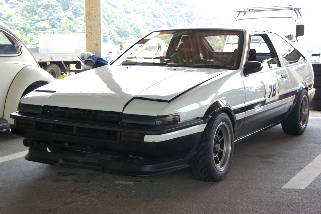トヨタ・スプリンタートレノ(1984年式・AE86)愛車紹介65台目 トヨタ 2017年08月25日 0 今回紹介する車両は「ドンキホーテジムカーナ2017」にエントリーされていたトヨタ・スプリンタートレノです。 年式:1984年式型式:AE86 4代目スプリンタートレノは1983年5月に発売された車です。先代のレビン・トレノと同じ自然吸気(NA)の1.6 Lエンジンと後輪駆動(FR駆動)の組み合わせ、そして先代の「TE71型」とサスペンションの仕様がほぼ同様だったため、改造が容易でした。新規開発された4A-GEU型エンジンを搭載し、チューニング志向の強い層の支持を受け人気となりました。当時、新車・中古車問わず人気があったのはレビンでした。そのため、AE86といえばレビンのことを指すのが普通でした。一方トレノは、新車時の販売台数も少なく、中古車としての流通も少なかった車です。1990年代後半に漫画『頭文字D』の主人公、藤原拓海が乗る車として登場しました。漫画に影響された若者の間でAE86トレノの白黒、3ドアが人気となり、現在でも中古車は異常なほどのプレミアム価格で取引されるようになりました。 徳島県徳島市よりエントリーされていました。