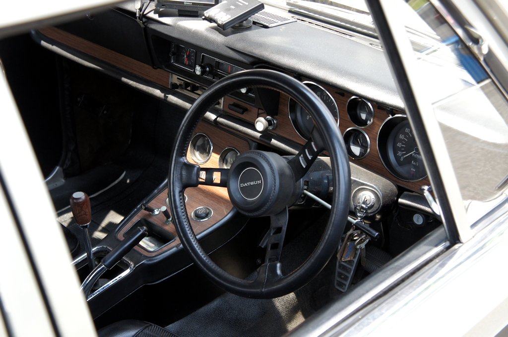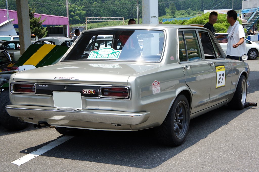 ニッサン・スカイラインGT-R(1970年式・PGC10)愛車紹介19台目 ニッサン 2017年07月11日 0 今回紹介する車両は「ドンキホーテジムカーナ2017」にエントリーされていたニッサン・スカイラインGT-Rです。 年式:1970年式型式:PGC10グレード:2000GT-R スカイライン2000GT-Rは1969年2月から1972年に販売されました。4ドアのセダンボディで発売されたため、おとなしいボディに獰猛なエンジンという意味の「羊の皮をかぶった狼」がキャッチコピーとして使われました。「羊の皮をかぶった狼」というと、スカイライン2000GT-Rを思い浮かべますが、元祖「羊の皮をかぶった狼」はスカイライン2000GT-Aや2000GT-Bです。スカイライン2000GT-Rは箱のようなスカイラインから「ハコスカ」や「ハコスカGT-R」の愛称で親しまれています。ハコスカGT-Rは、直列6気筒DOHCエンジンを搭載しました。このS20型エンジンは、レース用のエンジンをベースに設計開発されました。ハコスカは前期型と後期型で型式が変わり、前期型はPGC10、後期型はKPGC10です。後期型はホイールベースが70mm短縮し、2ドアハードトップになったため、空気抵抗が低減し運動性能が向上しました。愛媛県西条市よりエントリーされていました。前期PGC10型の総生産台数は832台です。内訳は1963年式が539台、1970年式が293台となっており、293台のうちの貴重な1台です。 インテリアの木目もきれいな状態でした。