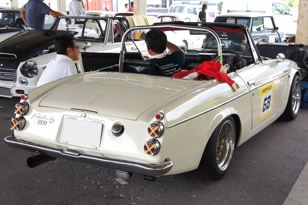 ニッサン・フェアレディ2000(1968年式・SR311)愛車紹介55台目 ニッサン 2017年08月15日 0 今回紹介する車両は「ドンキホーテジムカーナ2017」にエントリーされていたニッサン・フェアレディ2000です。 年式:1968年式型式:SR311 フェアレディ2000は1967年3月から1969年にダットサンブランドで販売されたスポーツカーです。発表された最高速度は205km/hで、国産初200km/hを超えました。フェアレディZの起源でもあり、後に「フェアレディ」の完成形と賞賛されました。新設計のU20型エンジンは直列4気筒SOHC1,982cc、最大出力145PS/6,000rpm最大トルク18kgm/4,800rpmを達成しました。高性能ながら、アメリカ市場ではポルシェの低価格モデルより廉価だったため人気となりました。高知県よりエントリーされていました。