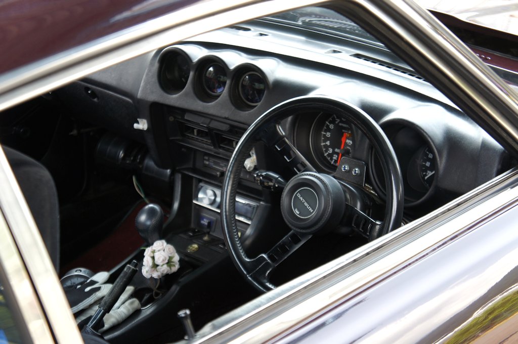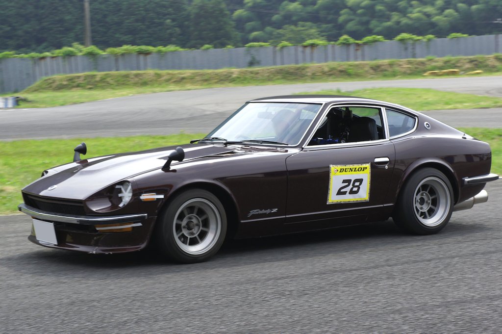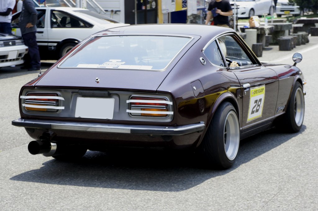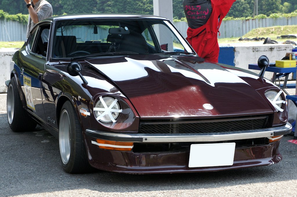 ニッサン・フェアレディZ(1974年式・S30)愛車紹介20台目 ニッサン 2017年07月12日 0 今回紹介する車両は「ドンキホーテジムカーナ2017」にエントリーされていたニッサン・フェアレディZです。 年式:1974年式型式:S30 フェアレディZ は1969年から1978年に発売されました。ジャガーやポルシェ並みのスペックと美しいデザインに加え廉価であったことから、北米市場を中心に大ヒットしました。約10年に渡って生産され、日本国内の販売台数は8万台、世界総販売台数ともなると55万台という、当時のスポーツカーとしては空前絶後の記録でした。日本国内でのみフェアレディZと名付けられ通称Zとして呼ばれています。北米ではニッサンブランドではなくダットサンブランドでした。ダットサンはDATSUNと表記されDATSUN Zとして販売されました。現地ではダッツンと呼ばれたため、「ダッツン・ズィー」の愛称で親しまれ、Z好きのオーナーからはZ-CAR(ズィー・カー)とも呼ばれています。日産自動車の輸出モデルである「DATSUN」を世界に知らしめた車です。漫画『湾岸ミッドナイト』では主人公の朝倉アキオが乗るZは、ミッドナイトブルー色のボディと、「狂おしく、身を捩るような」気味の悪い走りからの「悪魔のZ」と恐れられました。他にも『シャコタン☆ブギ』のアキラが乗る「240Z(240は排気量2400ccの意味)」、『よろしくメカドック』では「ナベさんのZ」、『GTroman』では「Z432(432は4バルブ、3キャブレター、2カムシャフトの意味)」等、多くの漫画に登場し人気でした。 愛媛県よりエントリーされていました。3リッターフルチューンということでした。 ミッション交換まで自分で行うそうですが、オーナーは女性でした。オーナーブログ外部リンク:テリキとZのわがままゆるゆるカーライフ