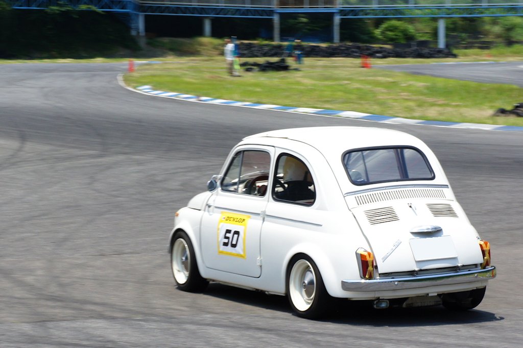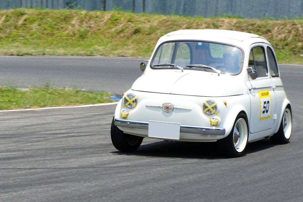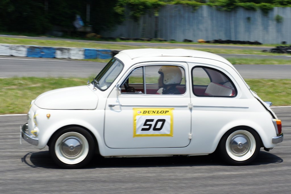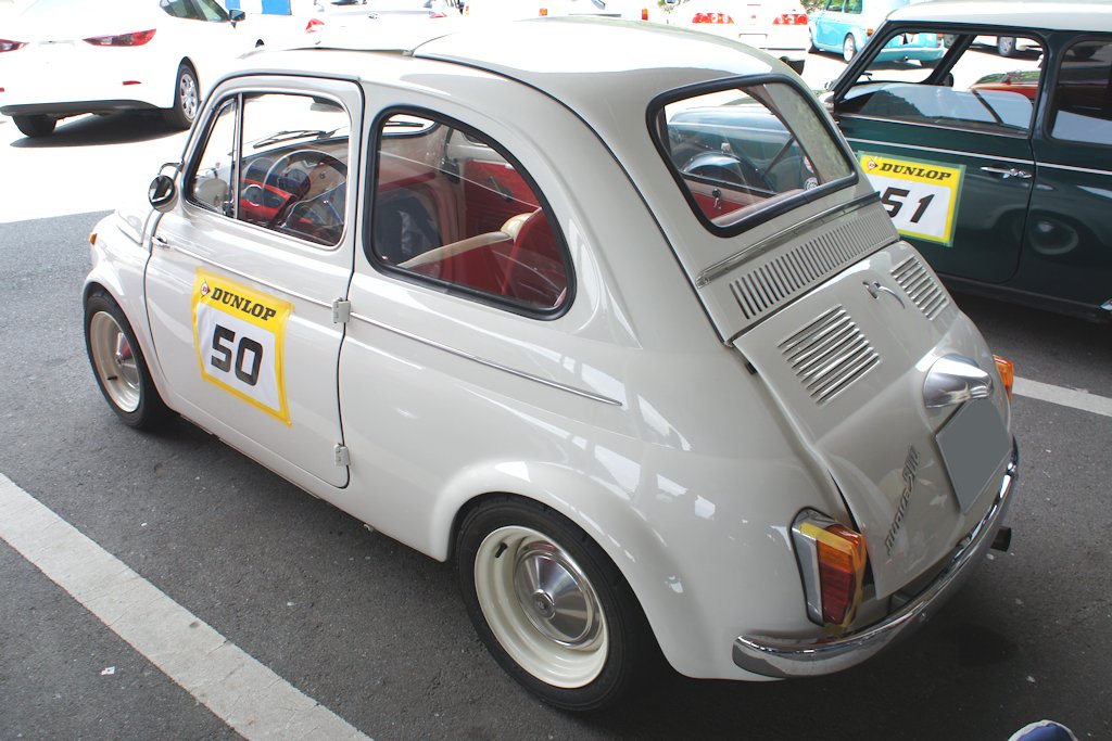 フィアット・500(1964年式・110D)愛車紹介39台目 フィアット 2017年07月30日 0 今回紹介する車両は「ドンキホーテジムカーナ2017」にエントリーされていたフィアット・500です。 年式:1964年式型式:110D 2代目500は1957年から1977年までの20年間にわたり生産された4人乗りの車です。フィアット500(ごひゃく)と呼ばれたり、500のイタリア語読みであるチンクェチェントと呼ばれたりしますが、正式名称はFIAT NUOVA 500(フィアット ヌォーヴァ チンクェチェント)です。正式名称はあまり日本では知られていないため馴染みが薄いかもしれません。1957年の発売当時は、スクーターからの乗り換えを促すための販売戦略としてスクーターを高価下取りし、それまでスクーターに乗っていたイタリア人に四輪車のメリットを強くアピールして販売台数を増やし4輪車に乗り換えさせました。排気量479cc空冷直列2気筒エンジンの15PSで最高速は90km/hと実用上は十分でした。1959年、排気量を499.5ccにまで上げ21.5PSに向上させたスポーツモデルのスポルトが登場しました。1977年の生産終了までの総生産台数は367万8000台に達しました。 日本では、漫画『ルパン三世』の劇場版「カリオストロの城」で、ルパン三世の愛車として登場したことで広く認知されています。 愛媛県今治市よりエントリーされていました。