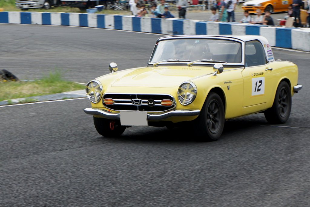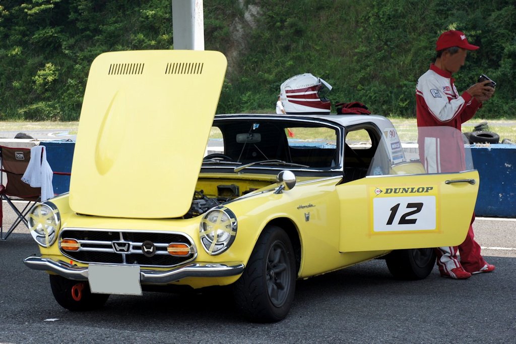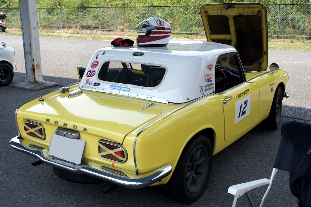 ホンダ・S800(1966年式・AS800)愛車紹介10台目 ホンダ 2017年07月02日 0 今回紹介する車両は「ドンキホーテジムカーナ2017」にエントリーされていたホンダ・S800です。 年式:1966年式型式:AS800ミッション:4MT S800は1966年1月から1970年5月の間に販売されました。ホンダ・S500、ホンダ・S600の登場に続くSシリーズの第3弾モデルです。縦置きされた水冷直列4気筒DOHCエンジンをフロントに積んだ後輪駆動(FR駆動)です。排気量791ccながら、最高出力70PS/8,000rpm、最大トルク6.7kgf·m/6,000rpmまで向上し、最高速度は160km/hと発表され、ホンダ初の100マイルカーとなりました。(100マイル=約160km/h)100マイルと言えば、約2倍の排気量の車の最高速度に匹敵しました。当然サーキットでも活躍し、さまざまなレースに出場しパフォーマンスの高さを証明しました。結果として、世界各国で人気を博した車になりました。静岡県浜松市よりエントリーされていました。初参加ということでした。 現在のナンバープレートの分類番号は3桁ですが、このS800は1桁のシングルナンバーでした。話を伺うと45年に渡り所有されており、大変愛着を持たれていました。飾っていてもしかたないと、走らせているようです。なかなか走っている姿を見ることが出来ない車なので、当時を知らない人にも貴重な時間となりました。きれいな内装からは大切にされていることがわかります。 エンジンも整備が行き届いていました。