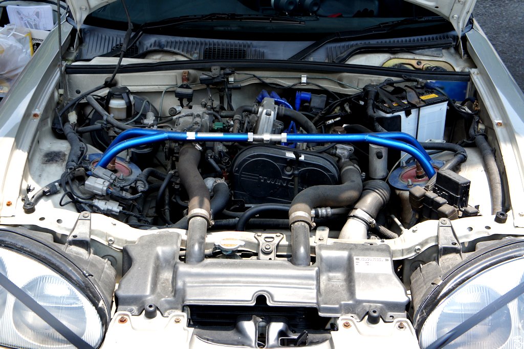 スズキ・カプチーノ(1990年式・EA11R)愛車紹介26台目 スズキ 2017年07月18日 0 今回紹介する車両は「ドンキホーテジムカーナ2017」にエントリーされていたスズキ・カプチーノです。 年式:1990年式型式:EA11Rミッション:5MT カプチーノは1989年の東京モーターショーに参考出品され、1991年11月に発売された軽自動車のオープンスポーツカーです。1998年10月まで生産され、総生産台数は26,583台にもなりました。軽自動車で初めて4輪ダブルウィッシュボーン式サスペンションを採用した車でした。車名のカプチーノは「シナモン入りエスプレッソコーヒー」であるカプチーノが由来です。飲み物のカプチーノは、小さなカップに入ったちょっとクセのあるお洒落な飲物です。この小さなオープンスポーツカーのイメージに重ねて命名されました。ロングノーズ・ショートデッキのスポーツカースタイルのデザインとなっており、ルーフは3ピース構成されています。ルーフは取り外し可能で、「クローズ」「フルオープン」「タルガトップ」「Tトップ」の4種類から選択可能です。取り外したルーフはトランクに収納できます。この時代の軽自動車スポーツカーは車名の頭文字を取って「平成ABCトリオ」と呼ばれました。Aはマツダ・AZ-1、Bはホンダ・ビート、Cはカプチーノ。マツダ・AZ-1とホンダ・ビートは、後輪駆動(MR駆動)を採用していたのに対し、カプチーノは後輪駆動(FR駆動)を採用しました。これはスズキのこだわりで「ドライバーが主役になれる車」にしたい思いがあったそうです。 徳島県吉野川市よりエントリーされていました。