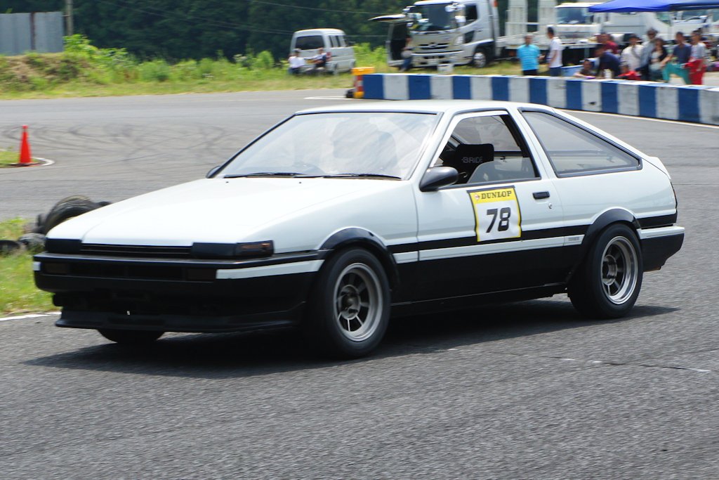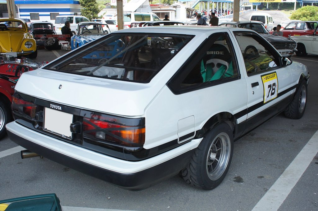 トヨタ・スプリンタートレノ(1984年式・AE86)愛車紹介65台目 トヨタ 2017年08月25日 0 今回紹介する車両は「ドンキホーテジムカーナ2017」にエントリーされていたトヨタ・スプリンタートレノです。 年式:1984年式型式:AE86 4代目スプリンタートレノは1983年5月に発売された車です。先代のレビン・トレノと同じ自然吸気(NA)の1.6 Lエンジンと後輪駆動(FR駆動)の組み合わせ、そして先代の「TE71型」とサスペンションの仕様がほぼ同様だったため、改造が容易でした。新規開発された4A-GEU型エンジンを搭載し、チューニング志向の強い層の支持を受け人気となりました。当時、新車・中古車問わず人気があったのはレビンでした。そのため、AE86といえばレビンのことを指すのが普通でした。一方トレノは、新車時の販売台数も少なく、中古車としての流通も少なかった車です。1990年代後半に漫画『頭文字D』の主人公、藤原拓海が乗る車として登場しました。漫画に影響された若者の間でAE86トレノの白黒、3ドアが人気となり、現在でも中古車は異常なほどのプレミアム価格で取引されるようになりました。 徳島県徳島市よりエントリーされていました。