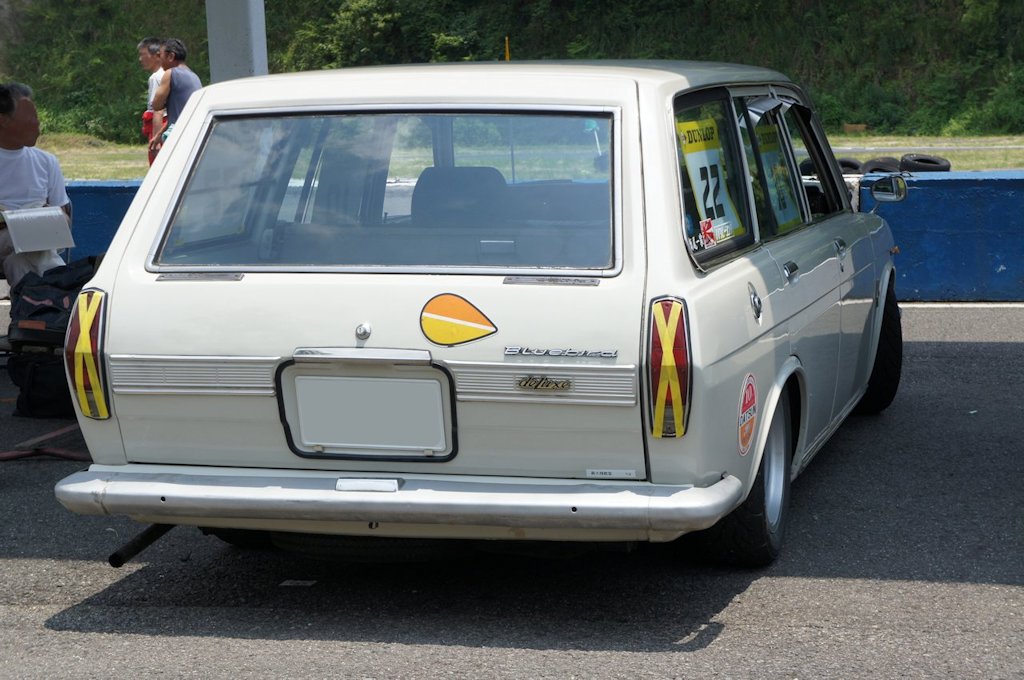 ニッサン・ブルーバードバン(1973年式・V510)愛車紹介8台目 ニッサン 2017年06月30日 0 今回紹介する車両は「ドンキホーテジムカーナ2017」にエントリーされていたニッサン・ブルーバードバンです。 年式:1973年式型式:V510ミッション:4MT ブルーバードバンは1967年に日産から発売された車です。フェンダーからリアに流れるスーパー・ソニック・ラインと呼ばれる直線的で彫りの深いシャープなデザインが特徴的です。フロントドアガラスの三角窓は換気装置の強化により省略され、明るく広いウインドウを採用しています。 愛媛県西条市よりエントリーされていました。車高がとても低く作られています。