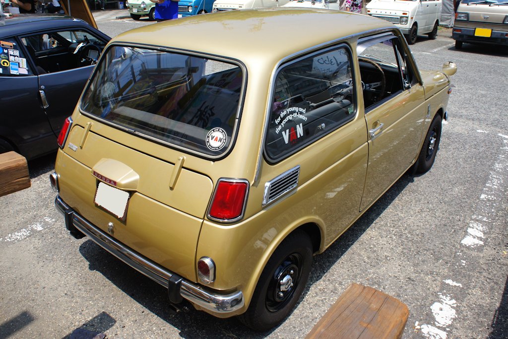 ホンダ・N360(1969年式)愛車紹介87台目 ホンダ 2017年09月09日 0 今回紹介する車両は「第8回U-550旧軽自動車ミーティング」に展示されていたホンダ・N360です。 年式:1971年式 シーラーゴールドメタリック色なので、グレードはSUPER DELUXEだと思われます。 1960年代、当時の最先端を行くファッションブランドとして人気だったVAN JACKETのステッカーが貼られています。